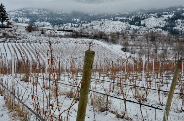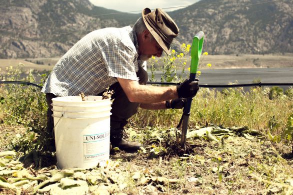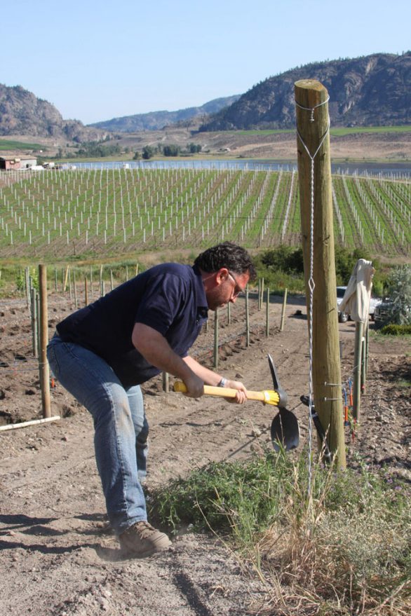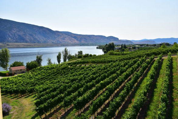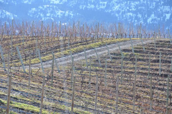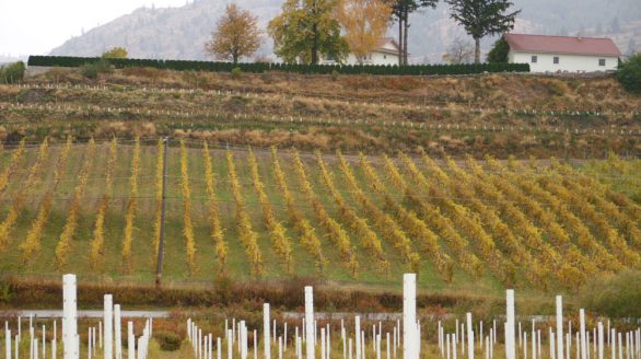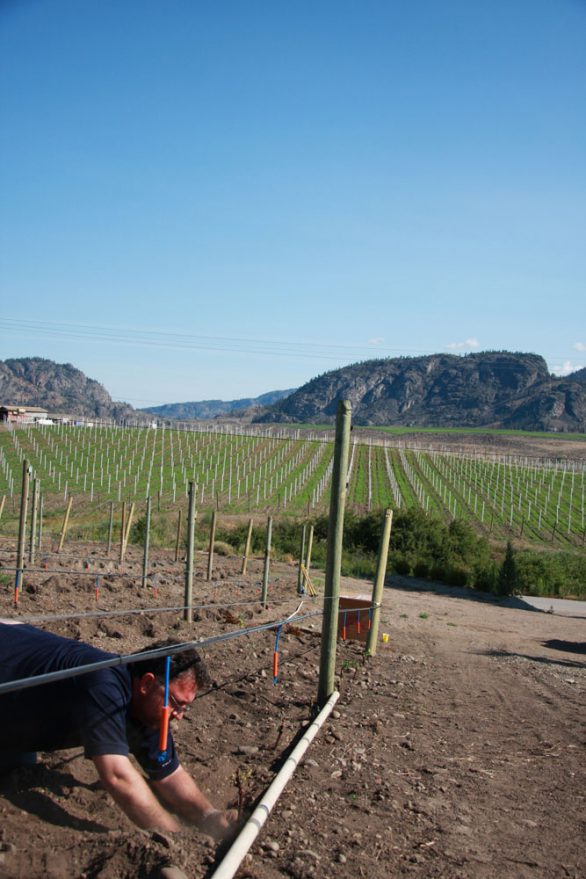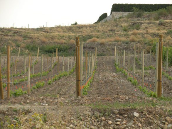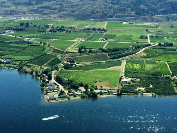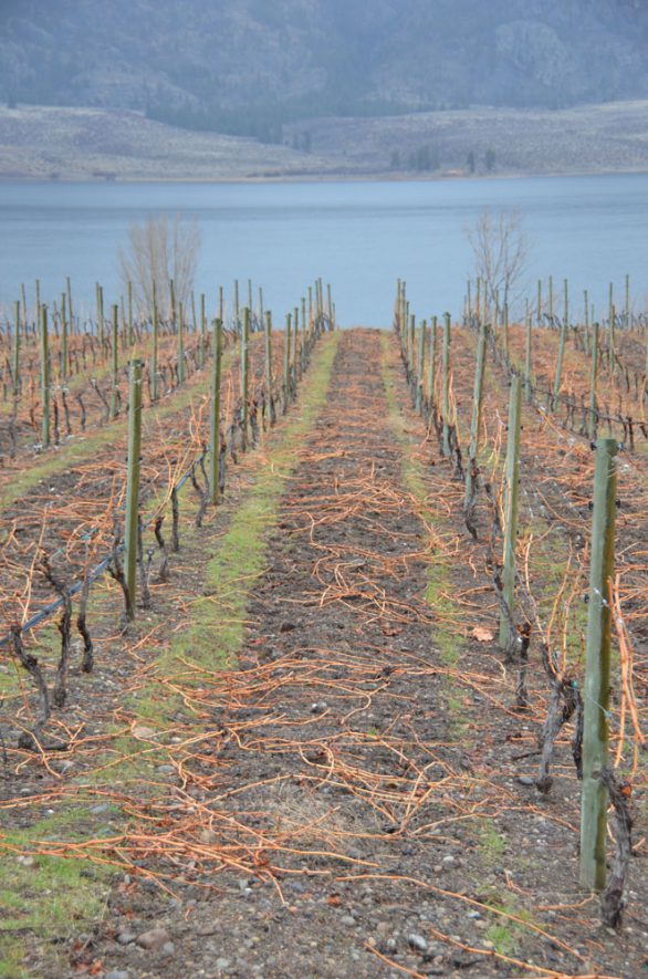 Vineyards are sited on deep, stone free, sandy glaciofluvial parent materials that dominate the benchlands to the east and north of Osoyoos Lake.