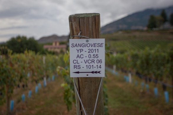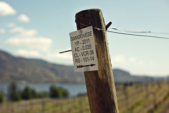 West bench facing east on a steep slope towards the lake. Merlot has a South and East exposure, the Sauvignon Blanc and Sangiovese are North East.